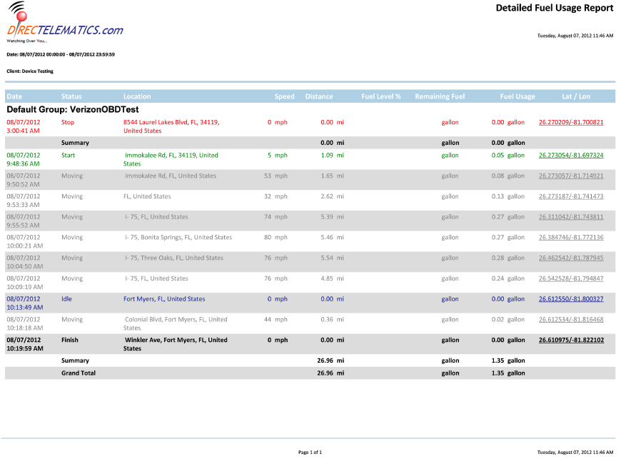If this is the only reason you start tracking vehicle location and performance, it's sure to payoff! GPS Fleet Tracking with DIRECTELEMATICS has been proven to reduce fuel costs time and time again. The Aberdeen Group recently concluded that GPS vehicle tracking systems have helped companies reduce fuel costs by 13% on average. DIRECTELEMATICS helps keeps vehicle fuel costs low by